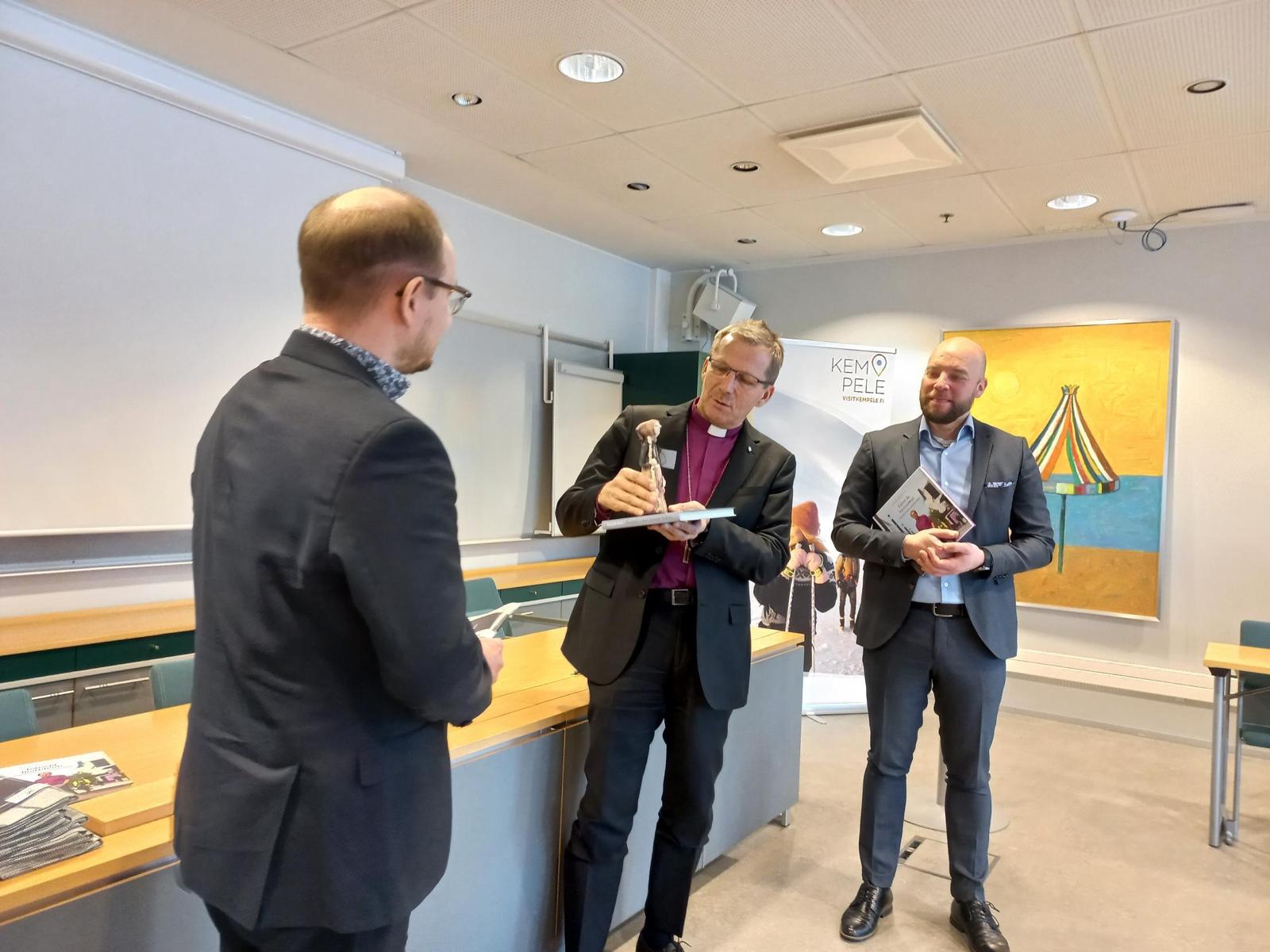 Vierailun päätteeksi kunnanhallituksen puheenjohtaja Antti Ollikainen luovutti piispalle Kempeleen Luutamummon muistoksi lämminhenkisestä vierailusta. Lisäksi piispa sai luettavakseen Meri synnytti helmen -kirjan, jossa myös luutamummon historia on tarkemmin kerrottuna.
