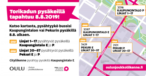 Joukkoliikenteen pysäkkimuutokset Torikadulla 8.8.2019 alkaen Lue lisää