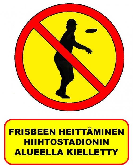 Frisbeen heittäminen hiihtostadionin alueella kielletty