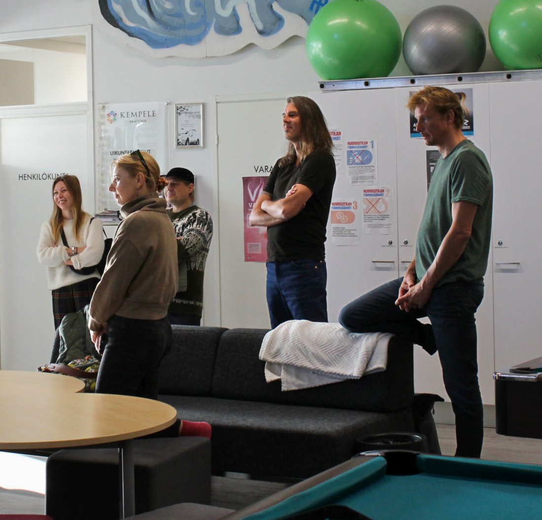 (Kuvassa Art Linnakallio 2026 -taiteilijat tutustumassa Kempele Akatemiaan. Kuvassa kuraattori vasemmalta Taija Jyrkäs, Timo Aho, Chris Peterson, Maurice Meewisse ja etuajalla Marharyta Zhurunova.)