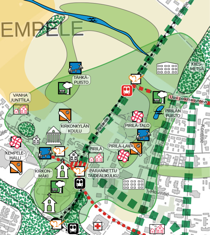 - Koko kunnan alueelta pääsee sujuvasti eri liikennemuodoilla hyödyntämään kulttuuripalveluita ja virkistäytymään puutarhakeskustan puistoalueille.