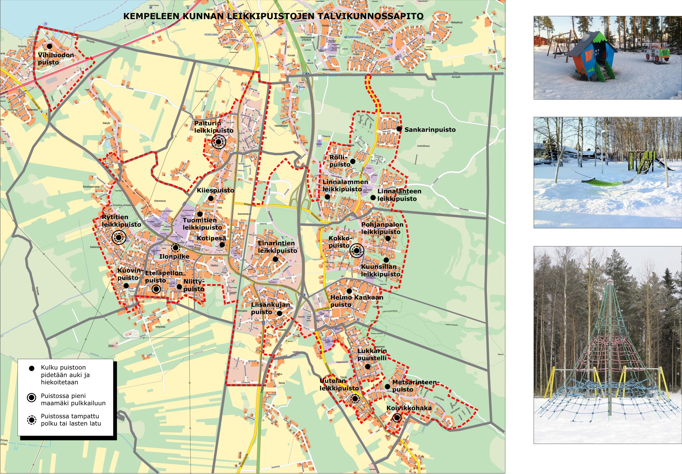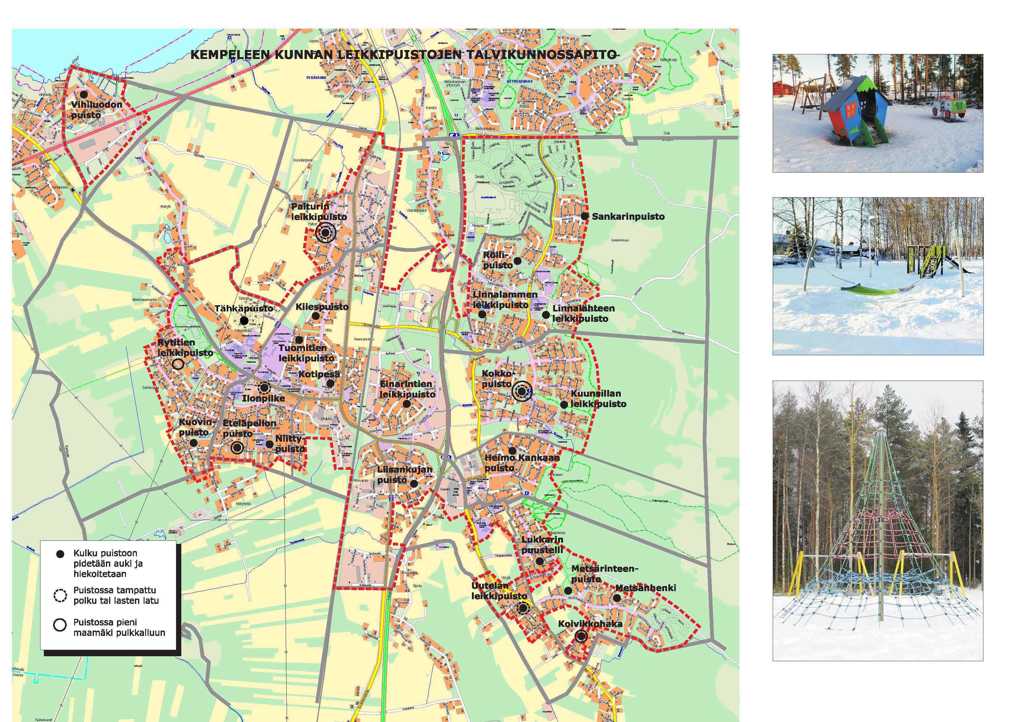 Kempeleen leikkipuistot listattuna asuinalueittain: