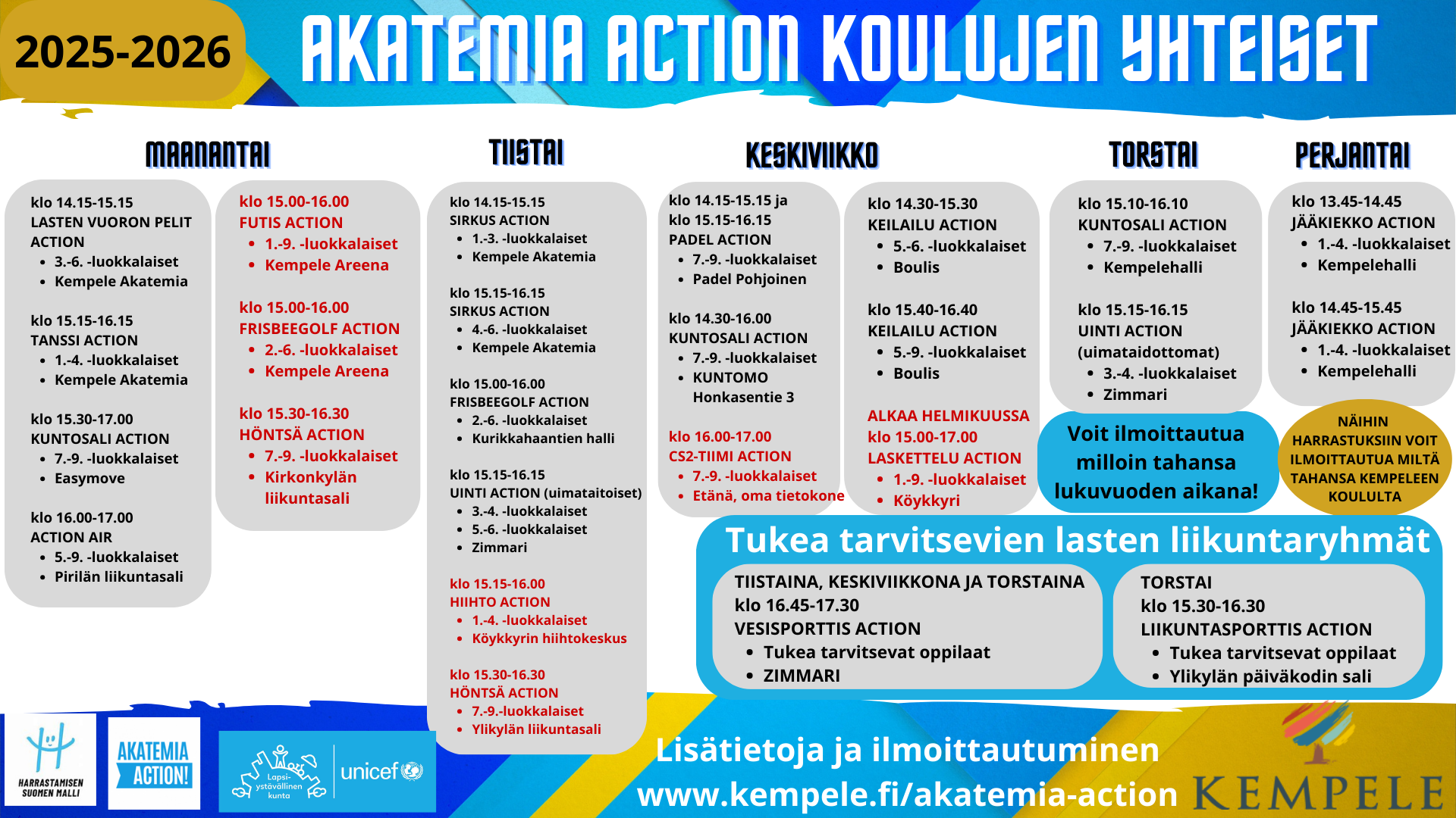 Näihin voi ilmoittautua minkä tahansa Kempeleen koulun 1.-9.luokan oppilaat