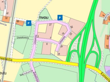 Parkkipaikat löytyvät tivolikentän molemmin puolin. Ethän pysäköi kadun varteen!