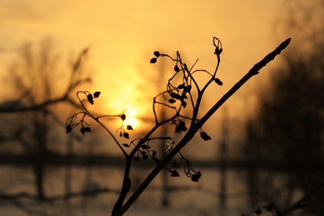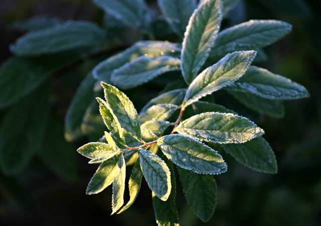 Rosa Kants Auringon kastehelmi oksalla